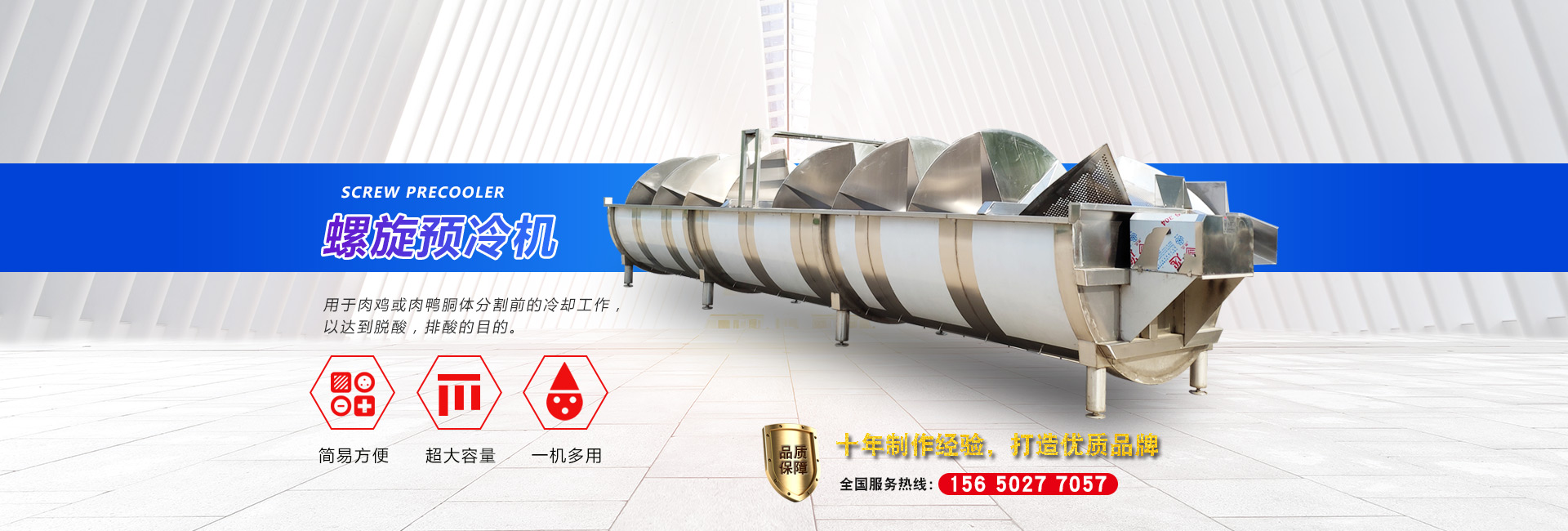 公司長(zhǎng)期與國(guó)內(nèi)外屠宰加工企業(yè)合作,走引進(jìn)——消化——?jiǎng)?chuàng)新和自主研發(fā)相結(jié)合的道路,在國(guó)內(nèi)外同類產(chǎn)品的基礎(chǔ)上,不斷更新和改造。公司主要設(shè)備有:A字型立式脫毛機(jī)、臥式脫毛機(jī)、強(qiáng)力噴淋機(jī)、松毛機(jī)、浸燙池、螺旋預(yù)冷機(jī)、禽籠清洗機(jī)、電暈機(jī)、兔扯皮機(jī)、兔割前爪/后爪機(jī)、剝胗機(jī)、自動(dòng)洗鉤機(jī)、螺旋燙爪機(jī)、雞爪脫皮機(jī)、分割輸送帶等屠宰用設(shè)備。其中,公司獨(dú)力發(fā)明生產(chǎn)設(shè)計(jì)的“電動(dòng)調(diào)節(jié)脫毛機(jī)”及“自動(dòng)控水控溫浸燙池”順利通過(guò)知識(shí)產(chǎn)權(quán)局的實(shí)質(zhì)性審查。公司所生產(chǎn)的設(shè)備 可與國(guó)外同類產(chǎn)品配套使用,設(shè)備遠(yuǎn)銷阿爾及利亞、澳大利亞等中東、非州等并建立了長(zhǎng)期穩(wěn)定的合作關(guān)系。